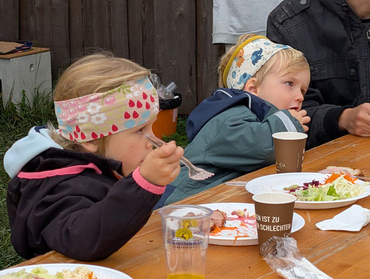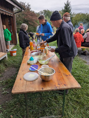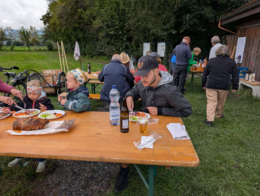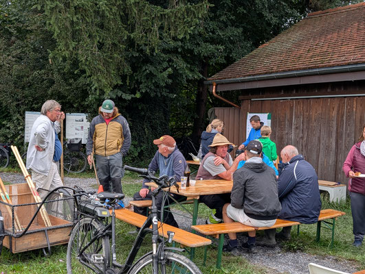 Neben der Arbeit kam auch die Geselligkeit nicht zu kurz: Nach getaner Arbeit stärkten sich die Teilnehmenden bei einer gemeinsamen Verpflegung und nutzten die Gelegenheit für regen Austausch über Natur- und Vogelschutz.